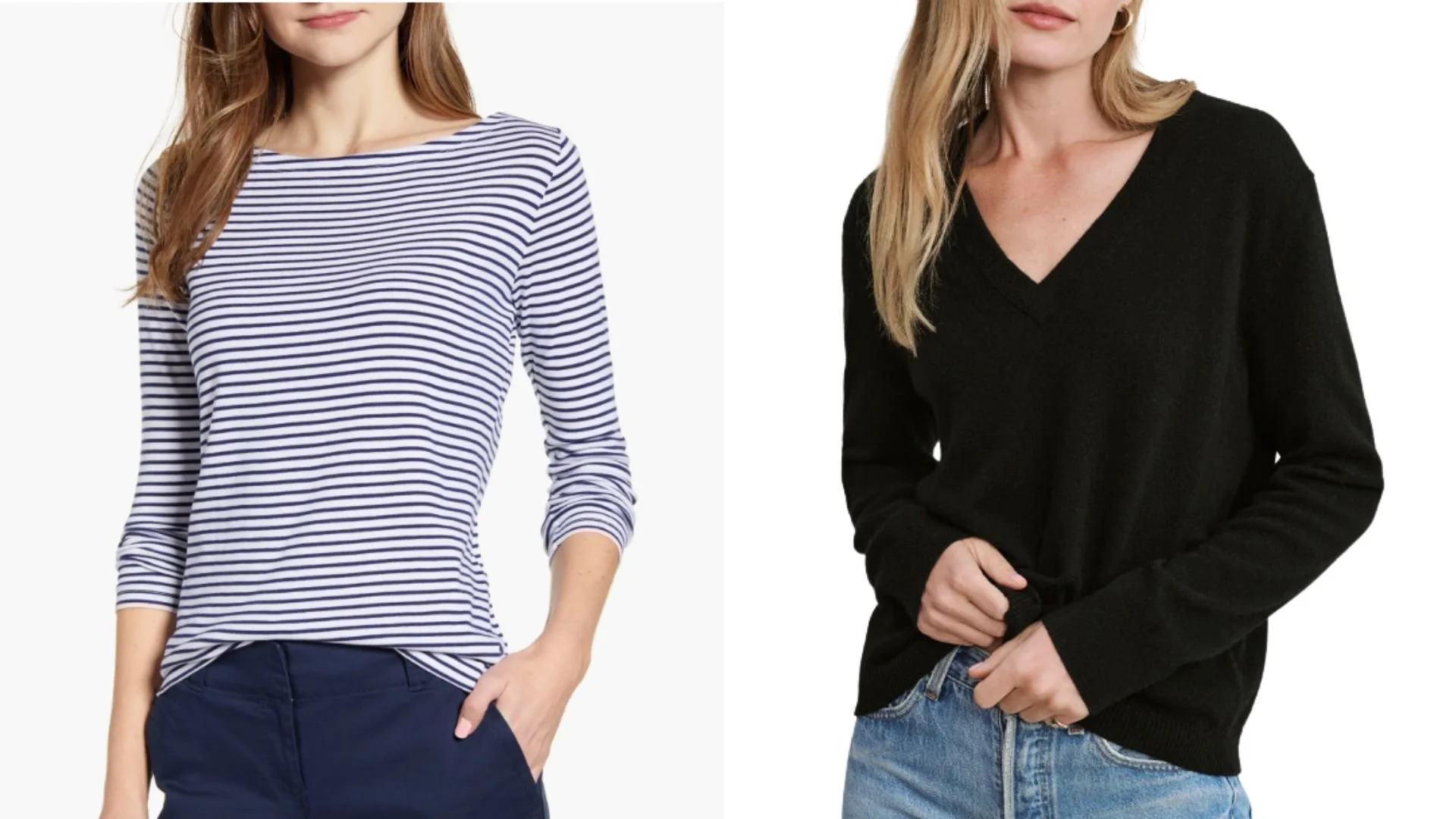 Featured above: Vineyard Vines Striped Boatneck Shirt | Jenni Kayne V-Neck Cashmere Sweater
