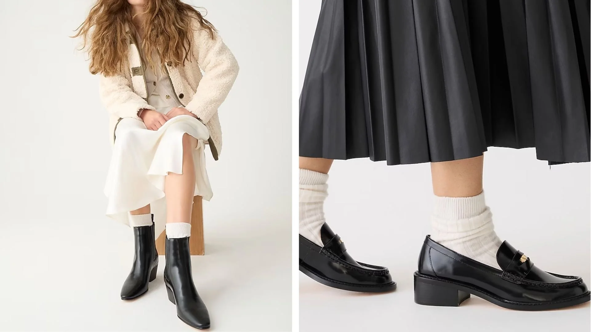 Transitional Pieces: Ankle boots or loafers can often serve as excellent transitional footwear, striking a balance when you're mixing lighter and heavier elements in your outfit. Featured above J.Crew Piper Leather Ankle Boots | J.Crew Leather Coin Loafers