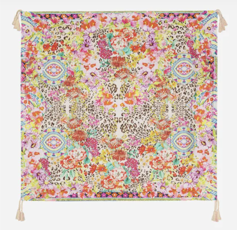 The Johnny Was Wild Garden Scarf adds a bright pop of color and delightful floral detailing that evokes a bold and classic bohemian look. Pair this scarf with a cardigan and chinos for a casual look that lasts all day and makes a definitive style statement.